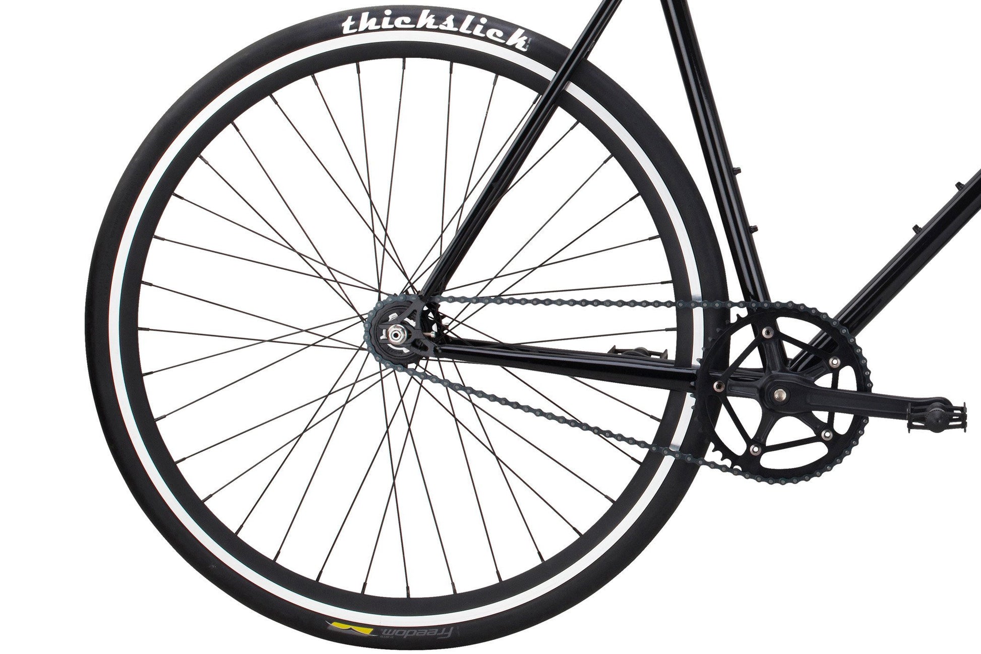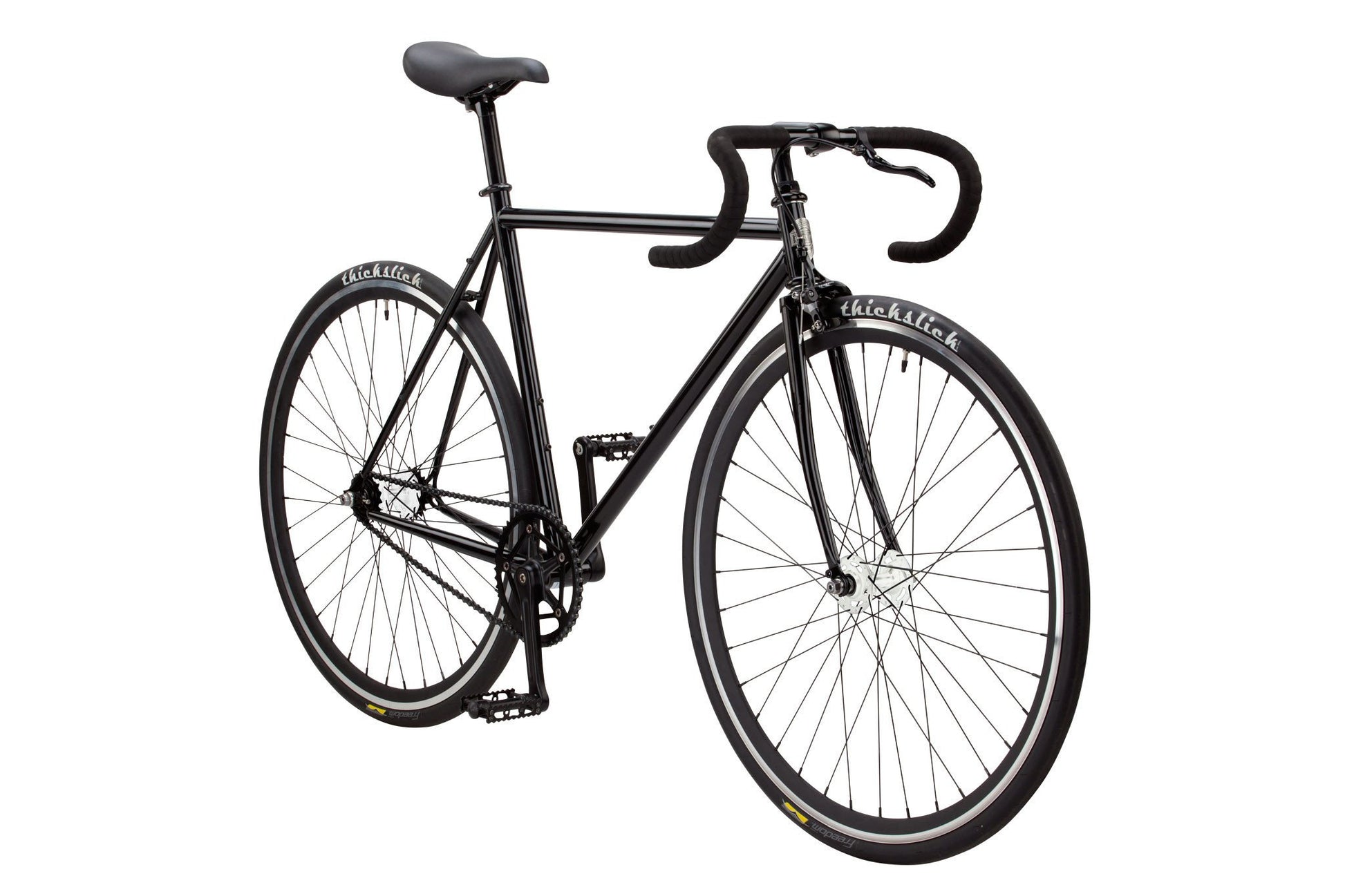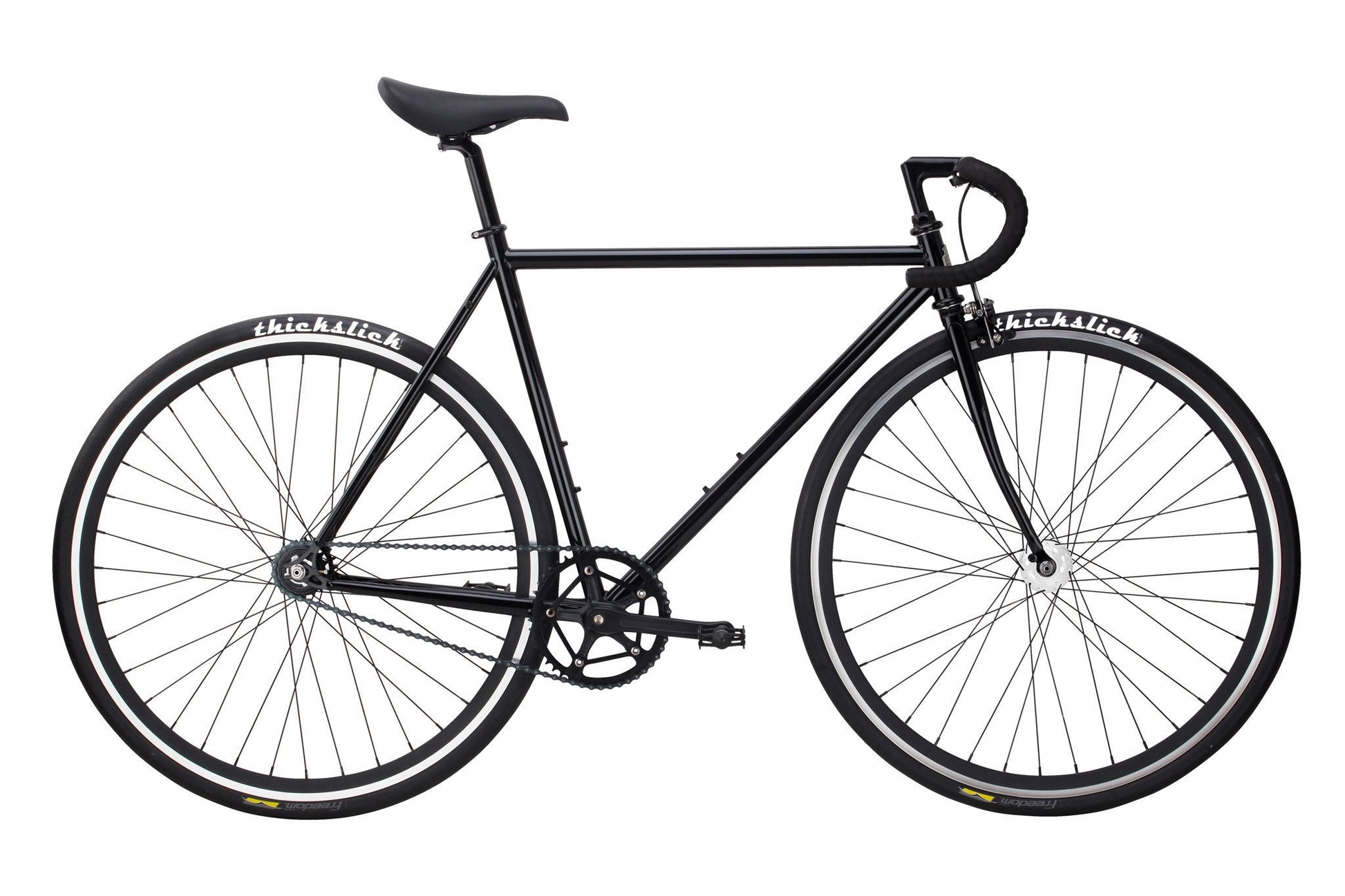 The Pure Fix Premium Series is the perfect bike to take your riding to the next level. Featuring a double-butted 4130 chromoly frame, the Premium Series was bred to be lighter, stiffer, and faster. It comes street-ready with wrapped drop bars, our 700C, 30mm wheelset featuring sealed bearing hubs and a machined braking surface, and includes Thickslick 700x28c tires standard. The raked fork and matching black quill stem and saddle help bring a dash of classic style to a bike that's guaranteed to turn heads, warm hearts, and haul ass.
